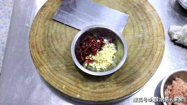2.生姜一小块拍两下切成姜末,大蒜几粒拍扁以后切成蒜末,抓入一小把红辣椒全放在一个盆中。
