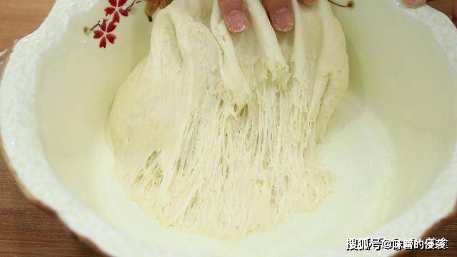 3.40分钟以后面团膨胀原来的两倍大,面团已经发酵好了,用手扒开面团看一下里面有许多小孔。