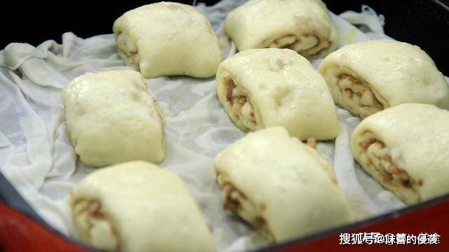 6.10分钟以后,我们取出电蒸锅,先放上一块湿纱布,温水的时候,把醒发好的肉卷放入锅内,放的时候面坯和面坯之间要留一定的空隙,面坯在加热的过程会膨胀变大,蒸15分钟左右肉卷就已经熟了。