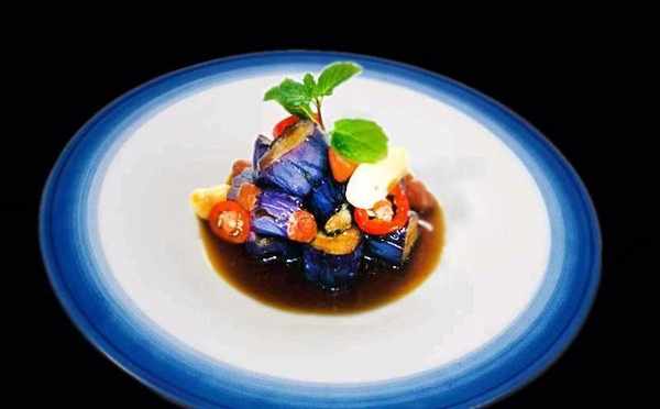 山茄子、青尖椒、美人椒、蒜子、味达美、老醋、白糖、料酒、蚝油
