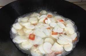 胡萝卜略微翻炒后,加入山药翻炒。