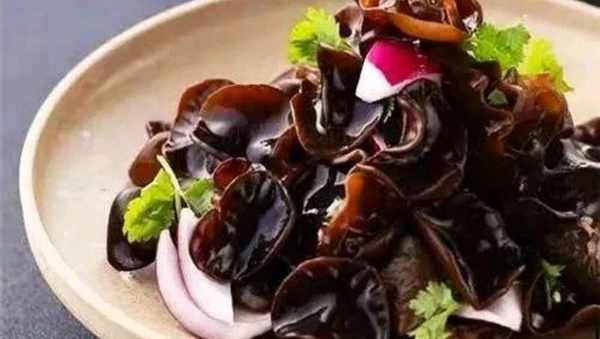 黑木耳、洋葱、香菜、盐、酱油、醋、芝麻油、海鲜酱