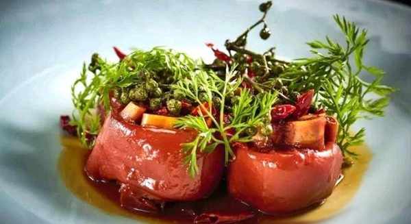 烧制的时长大约在35分钟,猪蹄软糯后出锅摆盘,净锅烧热色拉油把青花椒粒呛香后浇在猪蹄上,用香芹叶点缀即可。