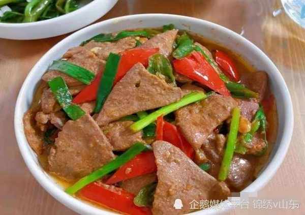 食材:猪肝250克、青椒5根、红椒2根、姜蒜片、花椒、料酒、老抽、红油豆瓣少许、大葱白2节、盐、味精