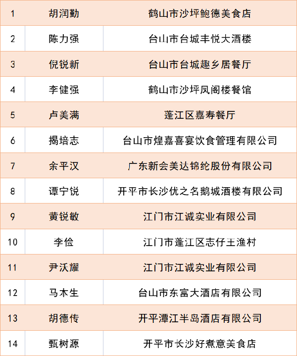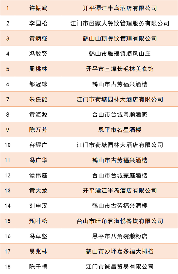 日前,江门市2022年广东省一二三星级“粤菜师傅”名单正式出炉!