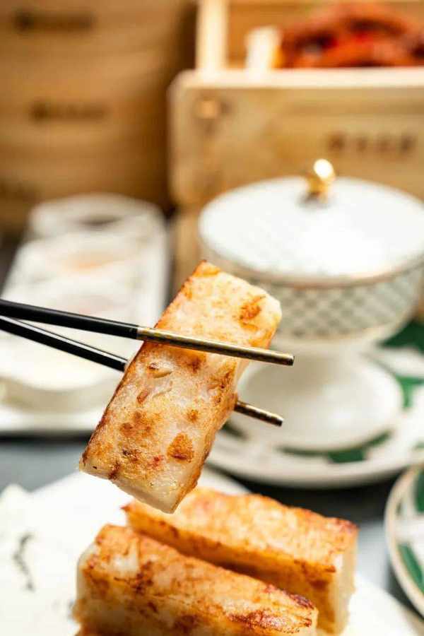 炸至金黄酥脆的萝卜糕也建议趁热吃哦
