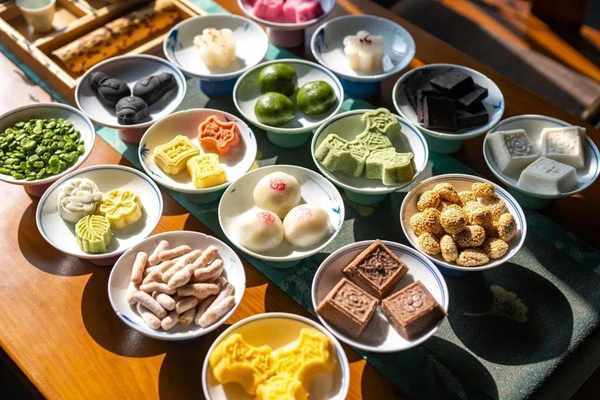 仁昌顺常年供应定胜糕、桂花糕、绿豆糕、桑椹糕、袜底酥、百合酥、芙蓉酥、巧果、麻饼、耳朵饼、玫瑰水晶糕等数十种糕点,春暖花开时节还有麦芽塌饼、酒酿饼等应市。