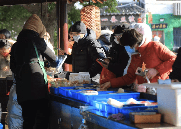 阿婆团子店里的咸菜团子一只只排列整齐,缘源园的猪油汤团在锅里翻转,五六个客人坐在安仁轩吃三鲜面和蛋黄馄饨,老严卤味馆里又出现了好几档上海游客,围着八仙桌吃卤鸭面和三丝面。