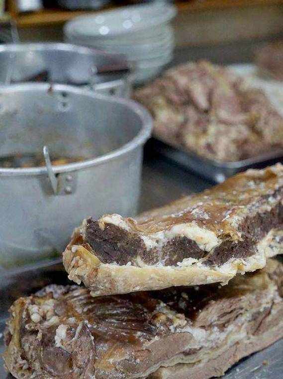 来店里的食客们来到这里,不无例外还要点上一份白切牛肉,肥瘦自挑,现切现买。一分红烧牛肉面,配几片白切牛肉,或单独食用白切牛肉,只需要沾少许的酱油和辣酱,入口即化的口感无法形容。
