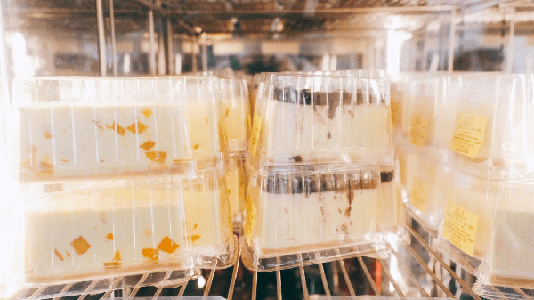 这是因为据说荣记是 用淡奶代替糖水,所以香味和细滑度都比传统制法制作出来的豆腐出色。