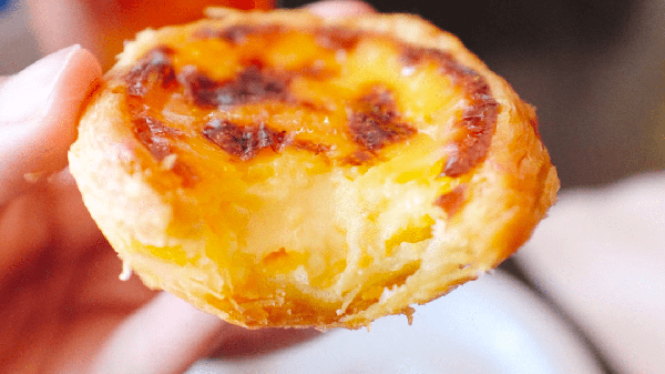刚出炉的蛋挞,挞心滑溜,蛋浆鲜甜,一口下去应该再也没有比这个更幸福的事情了吧。