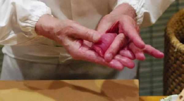 面对食客们的疑问,小野二郎笑着回答:“每种食材都有最美味的时刻,我们要做的就是把握这个时刻。”在小野二郎的手中,简单的生鱼片要手工按摩40分钟,米饭也要恰好贴近人体温度,只能这样做,才能保证鱼片的美味和米饭的弹性。