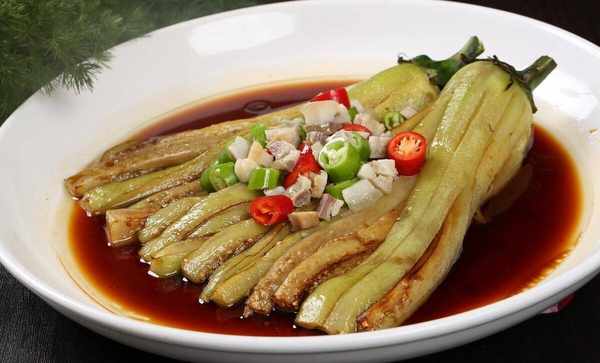 茄子半斤,洗净后蒸熟,再切成条,加点生抽、麻油、盐,大蒜泥、鸡精,拌匀后开吃,可以隔天吃,适用于痛风发作期。