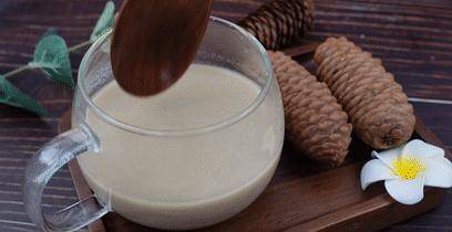 很多朋友说这个山药粉不容易冲开,因为里面有茯苓,这种是不容易融于水的,需要我们边冲边搅拌,可以先加一点热水,搅拌成糊糊,再倒入滚烫的开水,迅速搅拌,就容易搅拌均匀了,带着谷果的香气。