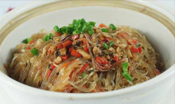 1、红薯粉条先用水泡一会儿,然后在锅里把水烧开。水开后捞出粉丝,倒入锅中煮开,隔水焯20秒捞出。