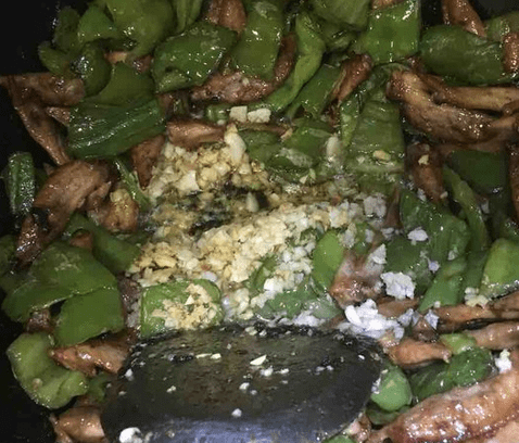5、最后加入蒜末,姜末,适量的盐和鸡精翻炒均匀就可以出锅了。