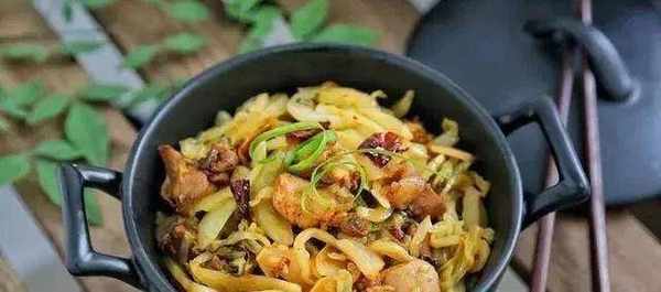 6、倒入兔肉翻炒均匀,加入料酒和胡椒粉翻炒出香气