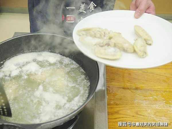 锅内烧水,把鸡翅冷水放入锅中,加入料酒10克去腥;水烧开以后焯水2分钟左右,打去锅中的浮沫,鸡翅变成微黄色时捞出控水备用。