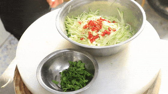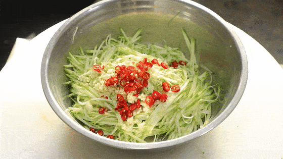 阿飞没有和其他凉拌菜一样,食材一定要悼水,而是在调好汁后,直接让西葫芦生拌,口感更加清脆爽口,让你下酒又下饭