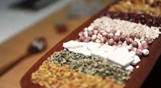 1.芡实:俗称鸡头米,《本草纲目》中有记载:“芡实,益肾气,补脾止泻,除风湿,补五脏不足,强筋壮骨。” 2.薏米:《神农本草经》记载它能“健脾益胃”、“利水除湿”、“补肺清热”、“解毒排脓”。 3.红豆:《神农本草经》中也记载红豆有清热祛湿的功效。 5.山药含有淀粉酶、多酚氧化酶等物质,有利于脾胃消化吸收功能,是一味平补脾胃的药食两用之品。