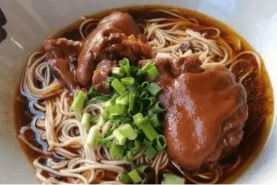 猪脚面是广东一带的传统风味小吃,属于粤菜系。汤色金红、猪脚酥烂、汤汁鲜美、猪脚滑润。猪脚面在广东当地也被称为猪手面,因为选用的是猪前蹄,而前蹄习惯上被叫作“猪手”。它更加短粗、肥嫩、洁白,筋肉较多,煮起来易烂,更适合配面。经过长时间的炖煮,猪手变得软糯,此时,再把它当作浇头加在竹升面里,一碗猪手酥烂、汤汁鲜美的猪手面就完成了。