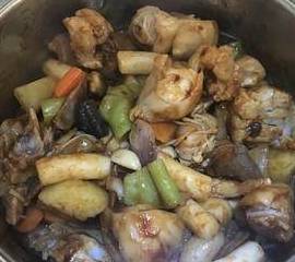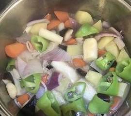 在加入其他蔬菜,然后倒入煮猪蹄的高汤,中火闷五分钟