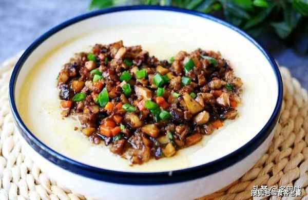 4、锅里水烧开,把鸡蛋放入锅里蒸10分钟左右,我用的电磁炉,大火蒸!蒸至蛋液凝固取出,把肉末撒在鸡蛋羹上即可