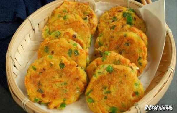 食材:豆渣、红萝卜、青椒、玉米面、普通面粉、食用油、盐、葱、小苏打、泡打粉