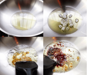 第三,加焖锅酱继续翻炒,要想鸡肉香,白芷配生姜,白芷和生姜搭配,不仅可以去腥,还能是鸡肉更香更入味。顺便把提前准备好的花椒、辣椒、八角、蒜瓣一起放进锅里翻炒。再放入洗净切块好的新鲜小土豆或者洋芋,可以根据个人喜好添加。