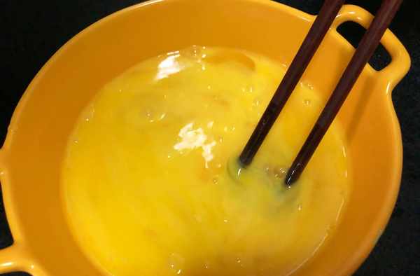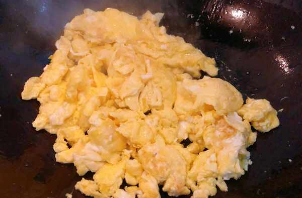 小火翻炒,鸡蛋炒熟后,将鸡蛋盛出来