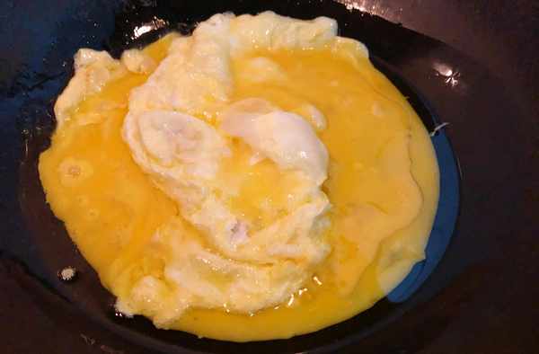 锅中一点点底油(盛出鸡蛋的锅底即可)