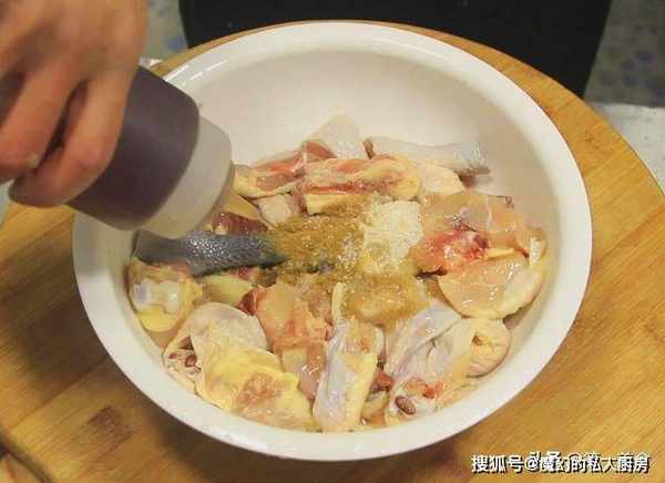 倒入料酒5克,用手抓匀,给鸡肉充分入味。