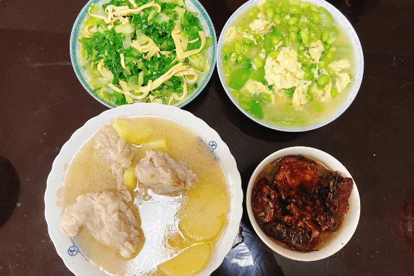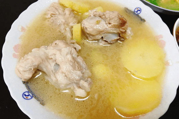 另外女子做了一个土豆骨头汤,两个人不需要太多的猪骨,吃不完第二顿就不好吃了,女子放了三个排骨,土豆炖得软烂,入口即化,清淡的土豆吃起来还有一些回甜,这样的做法在南方很少见,见得最多的还是土豆烧排骨。