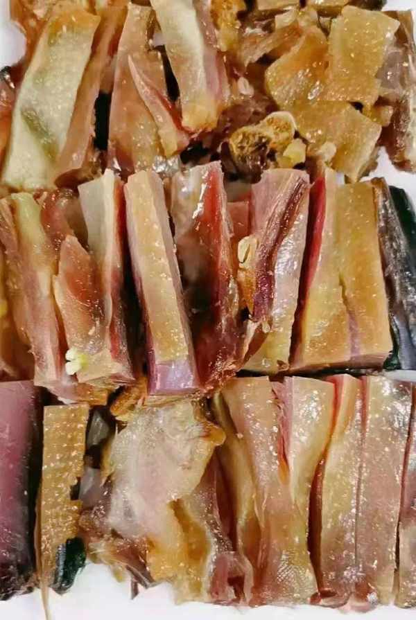 太阳晒干后的腊鸭,色泽透亮,过年摆盘待客的一道必须菜,蒸熟之后切好摆上一盘好下酒。肉质紧实,非常有嚼劲。