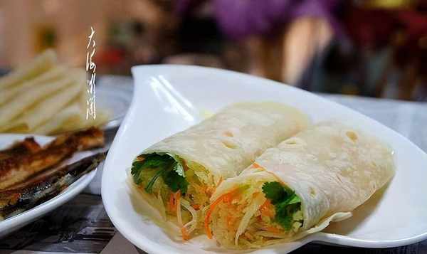 北京人习惯吃春饼,饼呈圆形,形似“龙鳞”,又称“吃龙鳞”。从头到尾吃猪头肉和各种春菜的春饼,意味着一整年的幸运和吉祥。