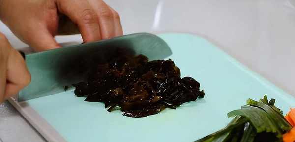 2。紫菜、香菇、金针菇、红萝卜洗净,去皮切细条;