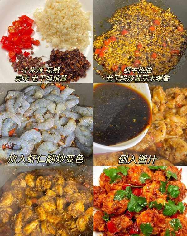 主料:虾仁、小米、花椒、蒜蓉、老干妈辣酱、葱花、生抽、老抽、料酒、蚝油、白糖、黑胡椒、孜然粉,这道菜好吃又下饭当晚餐吃,晚餐配啤酒是必须的,快来试试吧。