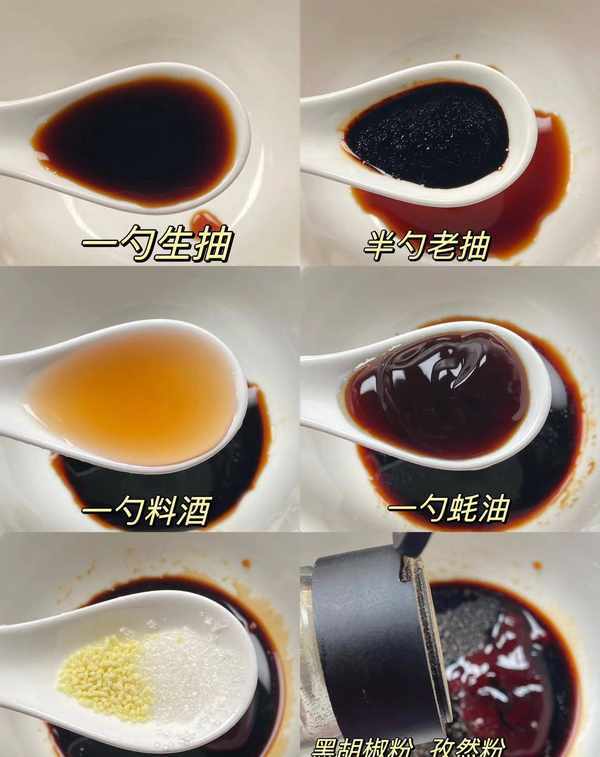 1.先准备酱汁,加入生抽1勺,老抽半勺,料酒1勺,蚝油1勺,糖少许,鸡精,孜然粉,黑胡椒粉依你的口味。建议加少许增加香味层,最后加入半碗水搅拌均匀备用。