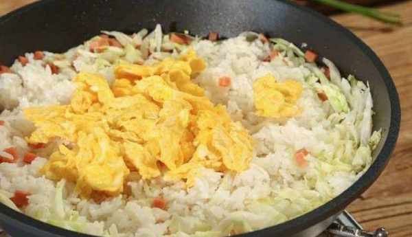 这时在锅中倒一些油,等油热了之后,将事先准备好的,米饭放入锅中,进行翻炒。翻炒到米饭均匀的铺在锅中。再将刚才炒好的鸡蛋扔到锅中,在进行翻炒。总之,就是不断的炒!炒出香味,最后放入准备好的火腿肠,稍微的在锅中翻炒一下,这样一份完整的精致蛋炒饭就做好了。很简单也很家常的做法,所有会做饭的人都可以在家里自己制作,如果劳累了一天,有人给做一份香气扑鼻的蛋炒饭,那滋味别提有多快乐了。