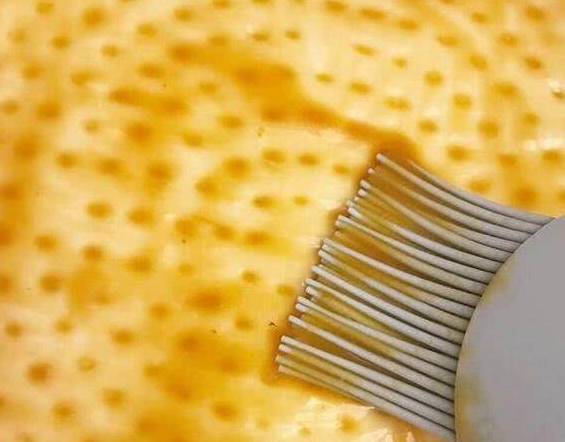 接下来,我们需要拿出一个叉子,然后用叉子直接在圆饼上戳出一个一个的眼子,差不多在整个圆饼上都戳出这样的眼子就可以了。