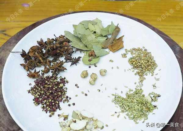 小茴香、香菜籽 、桂皮、 香叶、 八角、 花椒 、白芷片、白蔻。