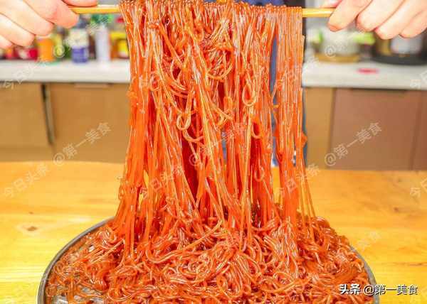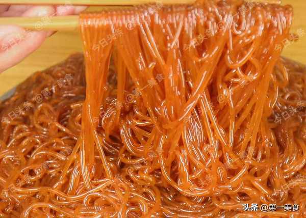 让粉条充分的吸收料油料水,这样才会更加的晶莹饱满富有弹性,现在汁已经吸收完了,咱这粉条也酱好了。