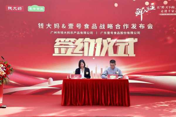 仪式上,钱大妈与壹号食品共同签署了战略合作协议,双方将合作推出新品“昨天下的土鸡蛋”,并将充分发挥各自优势合力搭建新品的销售渠道,以“鲜”入手展开深度合作,为粤港澳大湾区消费者带来鸡蛋消费升级的新场景、新体验。