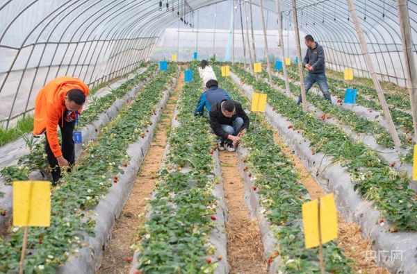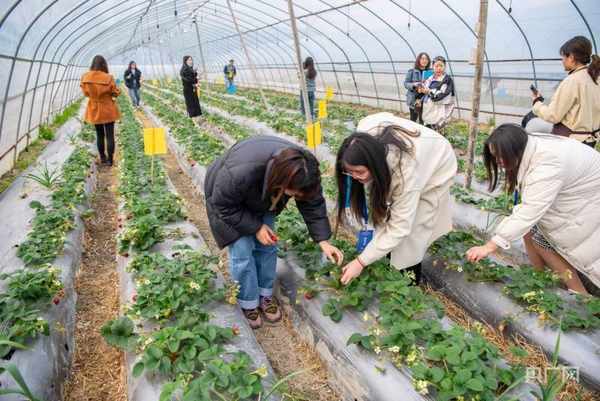 网媒采访团体验大棚草莓采摘(央广网发 通讯员供图)
