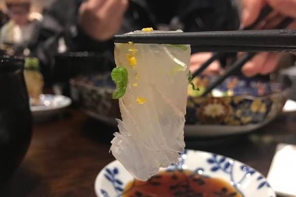 品尝第一口,让肉在口中融化,再一口,感受肉质的清新,用舌尖去体会已经被大师用刀切断的纤维所带来的细致感,也去感觉细腻的滋味和海洋的幽微香气但大师非常残酷,永远只给三片生鱼片,让我们有股难以言喻的失落。