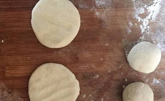 然后用擀面杖将剂子擀成饺子皮一样,擀的大小要均匀,但是不用太薄。