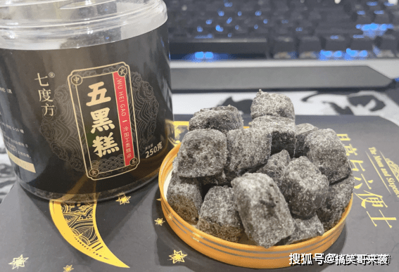 而它之所以这么黑,是因为选用的是食材均是黑芝麻、黑豆、桑葚等营养丰富的黑食材。并采用“粗粮细作”的方式,将食材进行蒸晒、研磨、烘焙,最终制成经典的黑色小糕点。