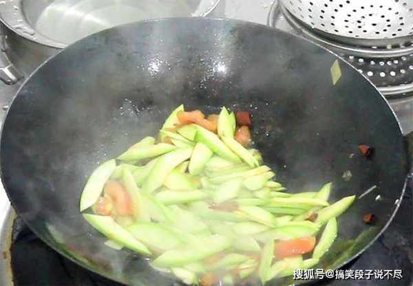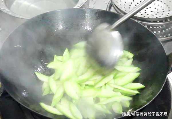 4.倒入葱姜蒜末炒出香味,把肉末炒至断生以后倒入瓠子,加入一点陈醋,食盐2克,鸡粉1克,翻炒化开调料以后勾入一点水淀粉,使调料和食材能够更好地融合,翻炒均匀就可以出锅装盘了。