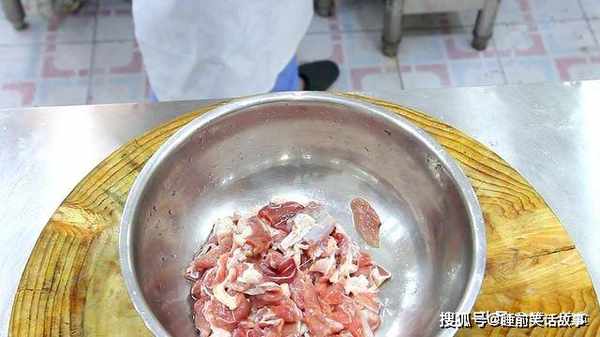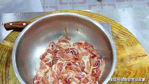打入一个鸡蛋清,顺时针快速搅拌两分钟,再加入料酒,干淀粉继续搅拌,料酒渗透到肉片内部,分解组织结构,挥发时带出铵类物质,口感滑嫩少异味。