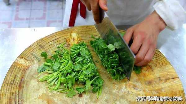 2.下面 准备一下配料,大葱白切成碎末,生姜切成菱形片,香菜切成段备用。